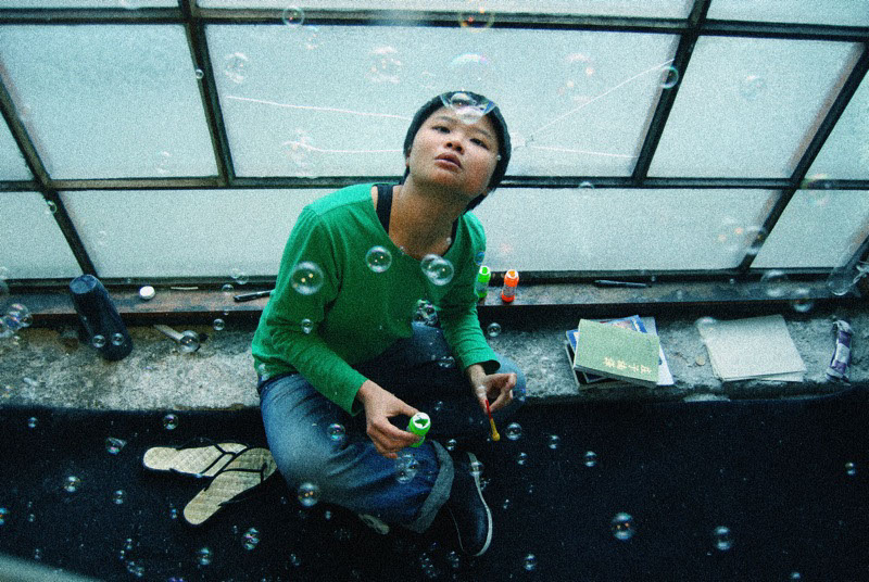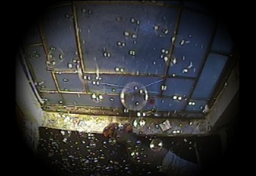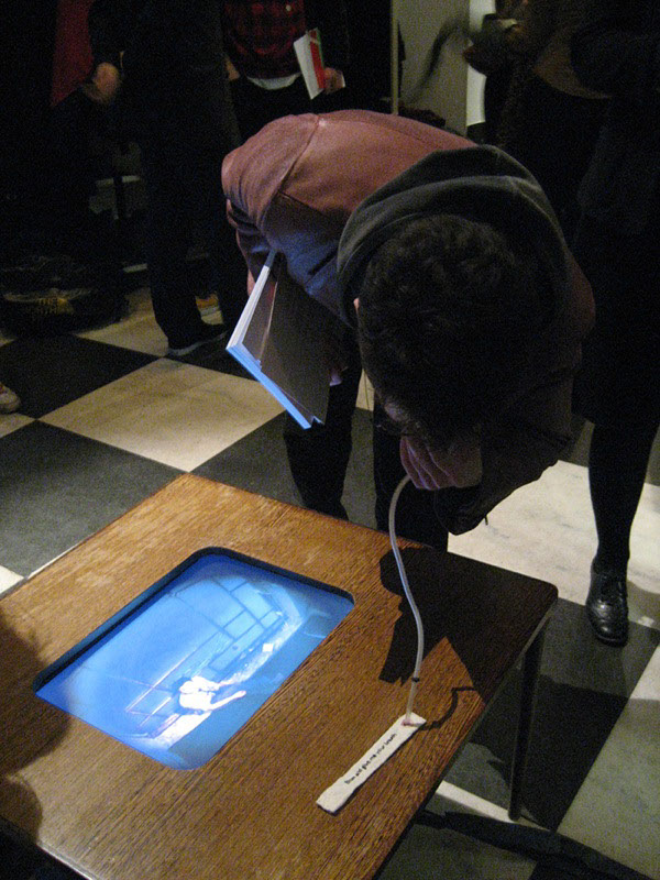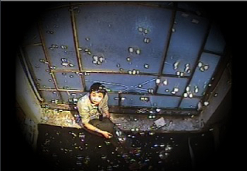 I breath-out the bubbles through a tiny hole of the ‘virtual room’ to ticket hall, the audiences looks up when the bubble leaked out. They found out the ‘virtual reality’ was just by their side.