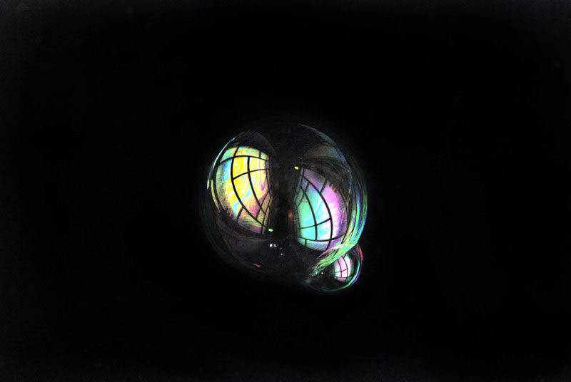 I was staying between the walls and doors of Kunsthall. I could see the windows reflected on the bubbles when they fell in the ‘virtual room’.