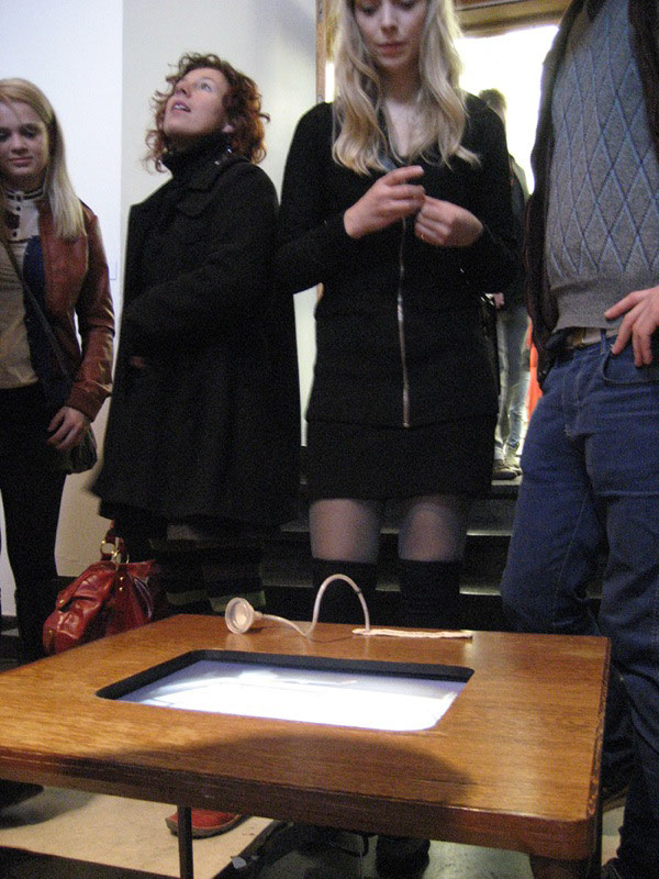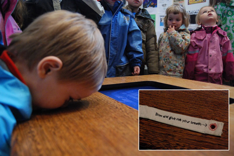 When I breath-out the bubbles through a tiny hole of the ‘virtual room’ to the ticket hall, the audience looked up when the bubble leaked out. They found out the ‘virtual reality’ was just by their side.